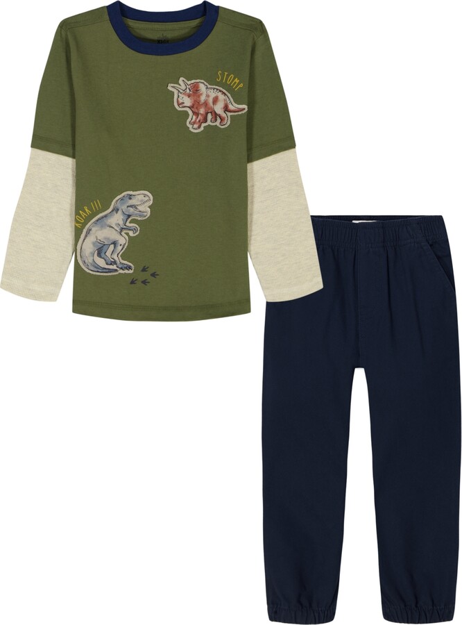 Kids HeadquartersKids Headquarters Boys 2T-7 2-Piece Dinosaur T-Shirt and Joggers Set - Olive green, Navy blue