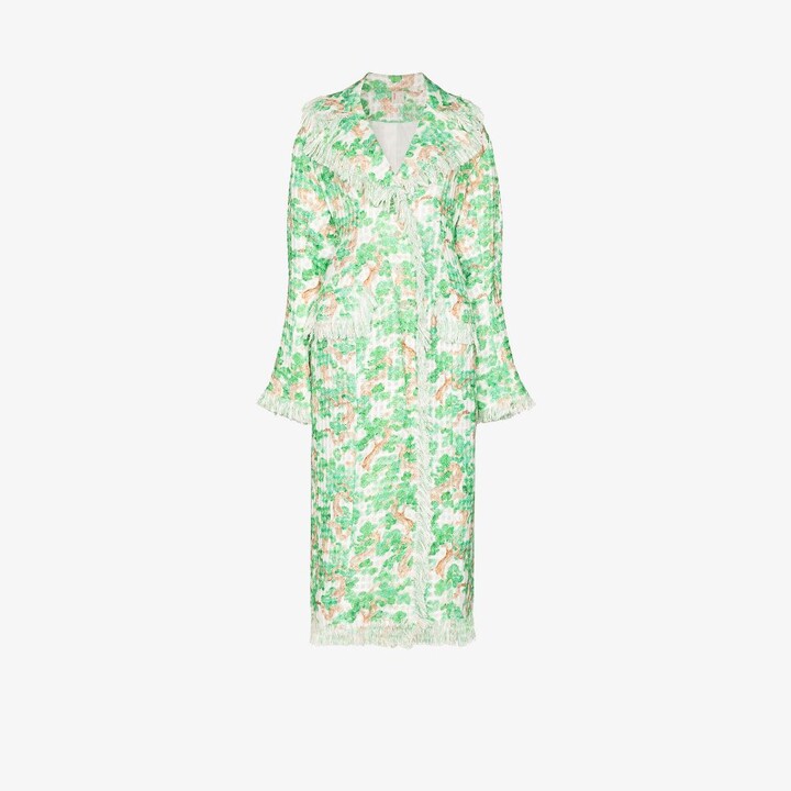 Yuhan Wang - Forest Print Fringed Coat - Women's - Acrylic/Polyester/Viscose/Other FibresPolyester
