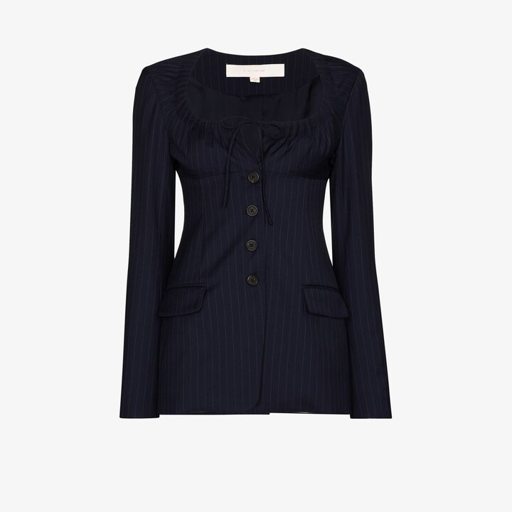 By Any Other Name - Tie Neck Pinstripe Wool Blazer - Women's - Virgin Wool