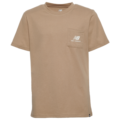 Boys New Balance New Balance Pocket Logo T-Shirt - Boys' Grade School Stoneware/White Size L