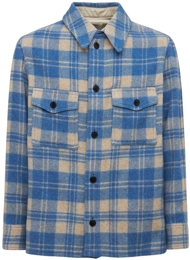 Wool blend plaid shirt