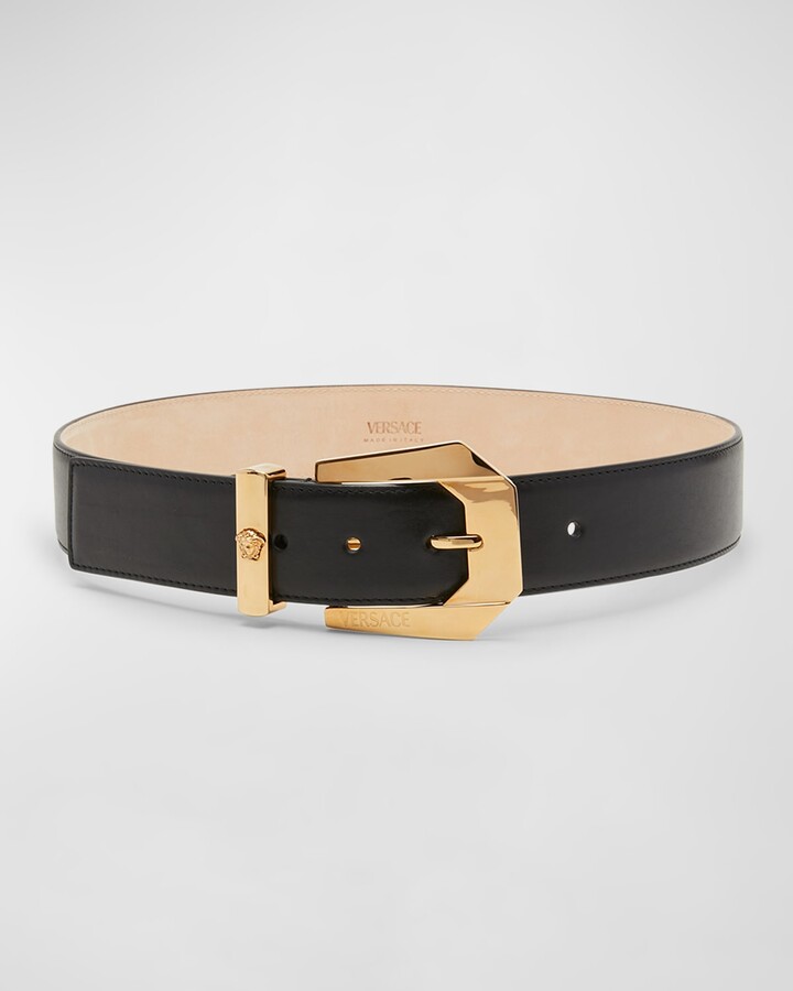 Medusa Safety Pin Leather Belt