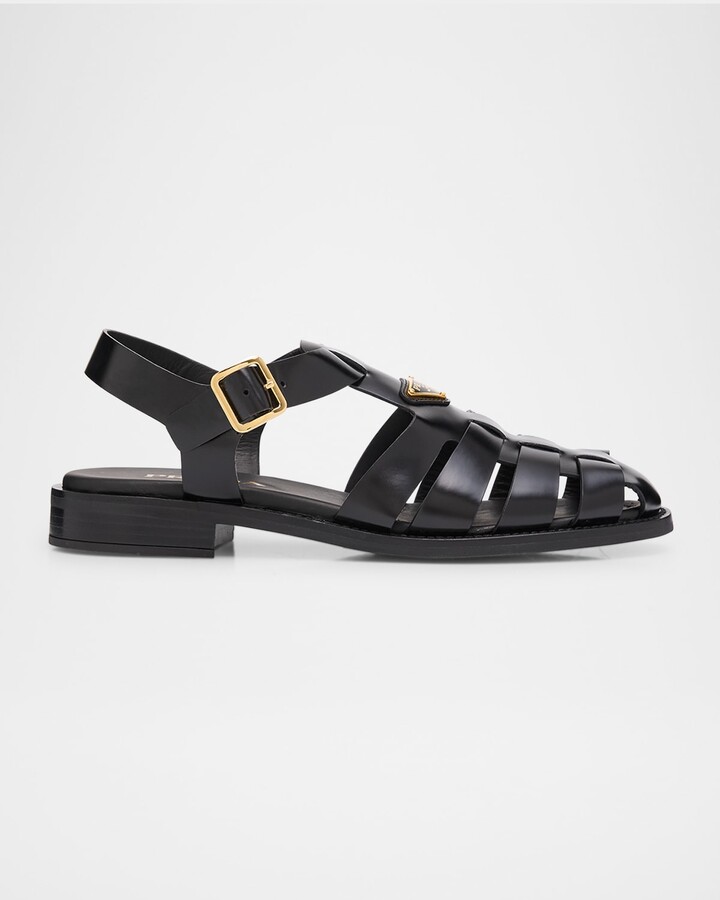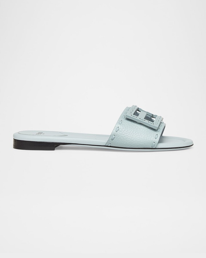 Leather Buckle Flat Slide Sandals
