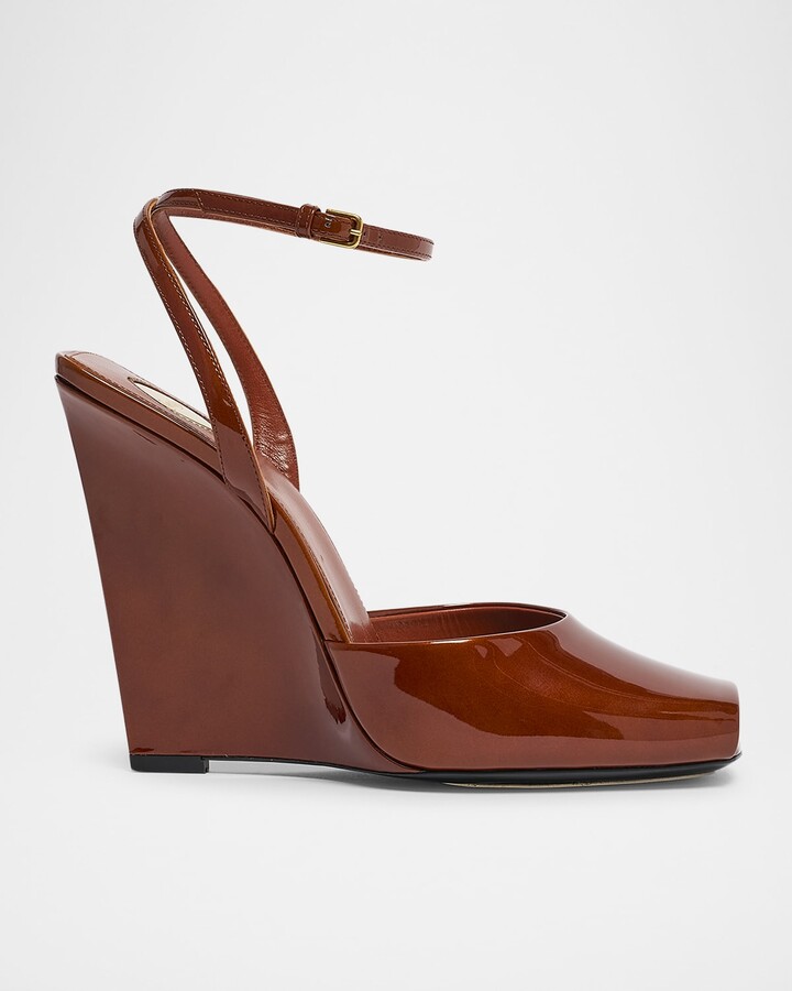 Gigi Leather Bar Ankle-Strap Wedge Sandals