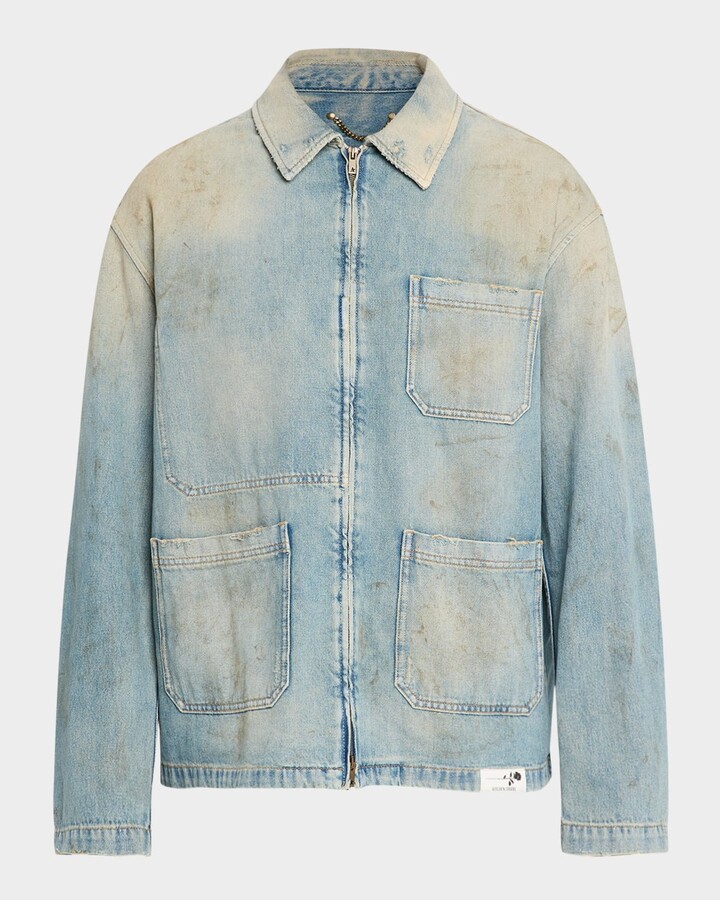 Men's Distressed-Effect Full-Zip Denim Jacket