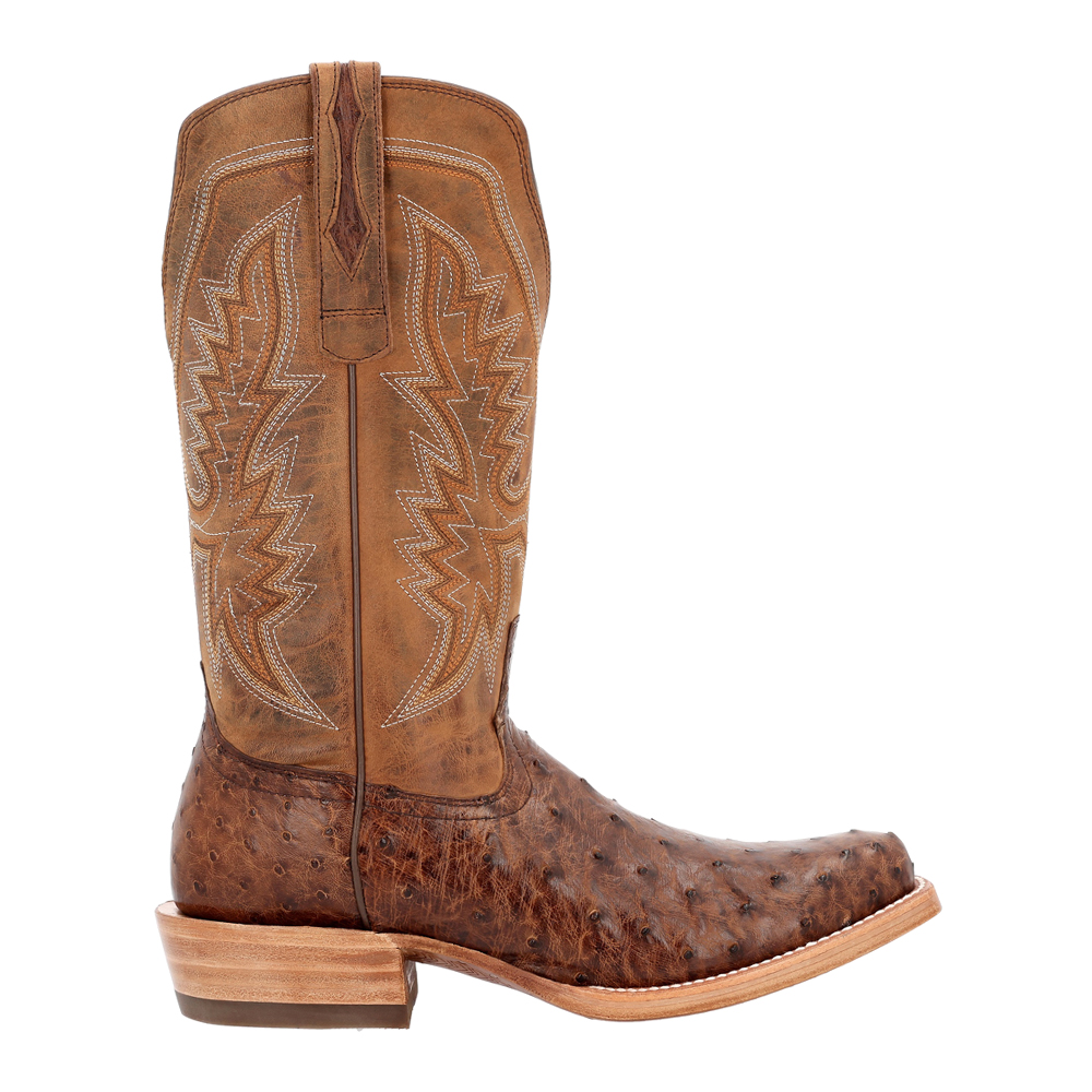 Durango Premium Exotic Full Quill Ostrich Embroidered Square Toe Pull On Cowboy Boots
